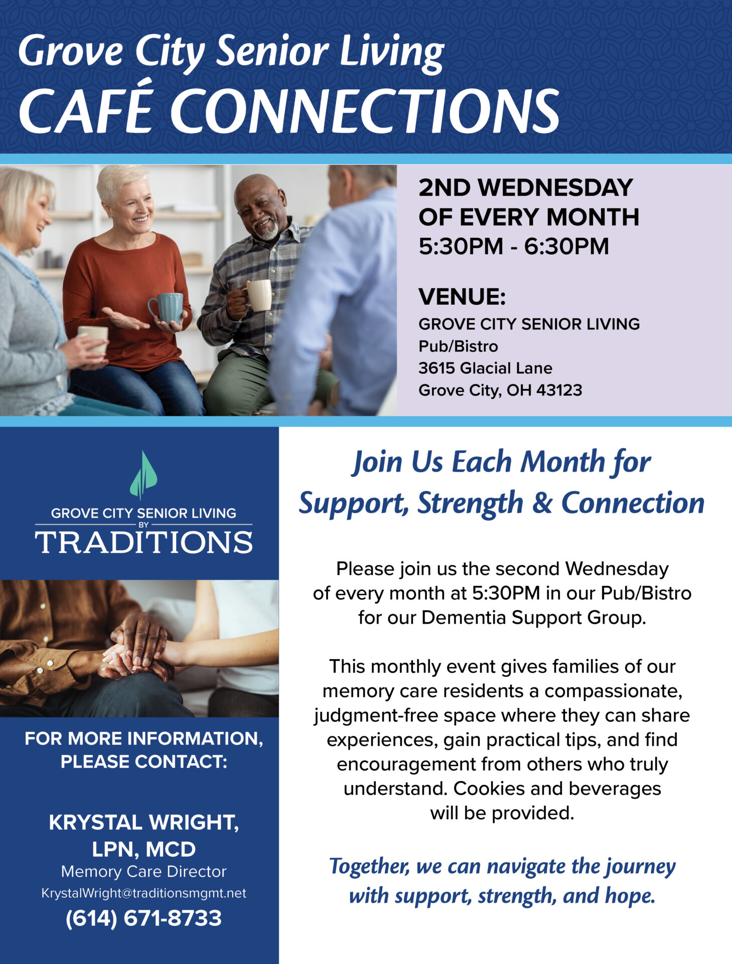 This monthly event gives families of our memory care residents a compassionate, judgment-free space where they can share experiences, gain practical tips, and find encouragement from others who truly understand. Cookies and beverages