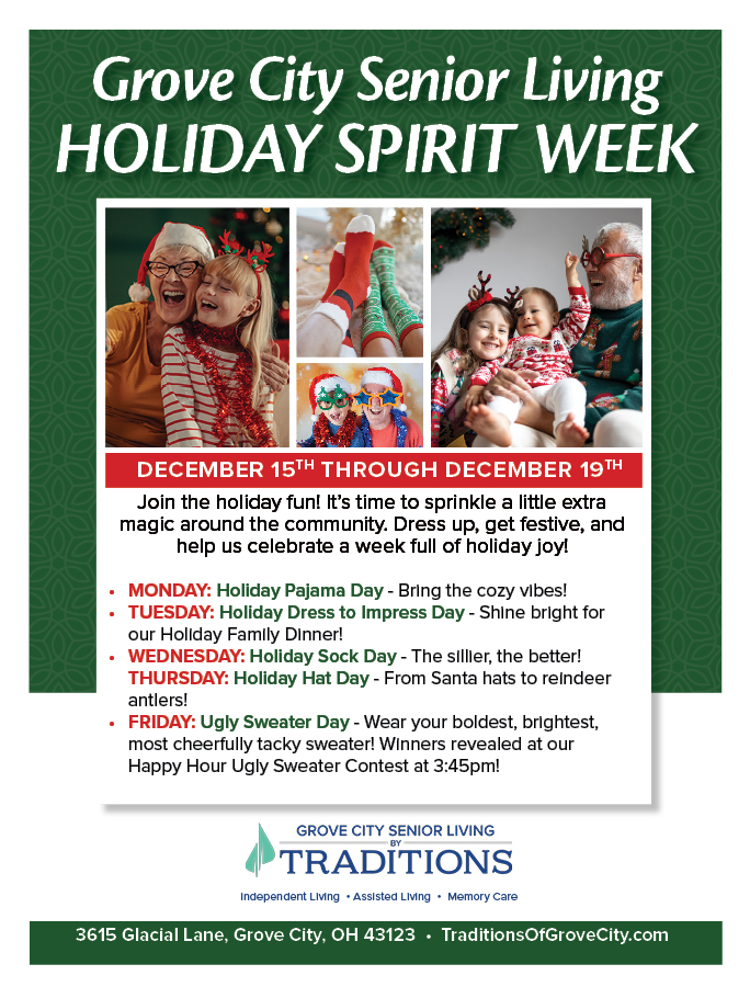 Join the holiday fun! It’s time to sprinkle a little extra magic around the community. Dress up, get festive, and help us celebrate a week full of holiday joy!